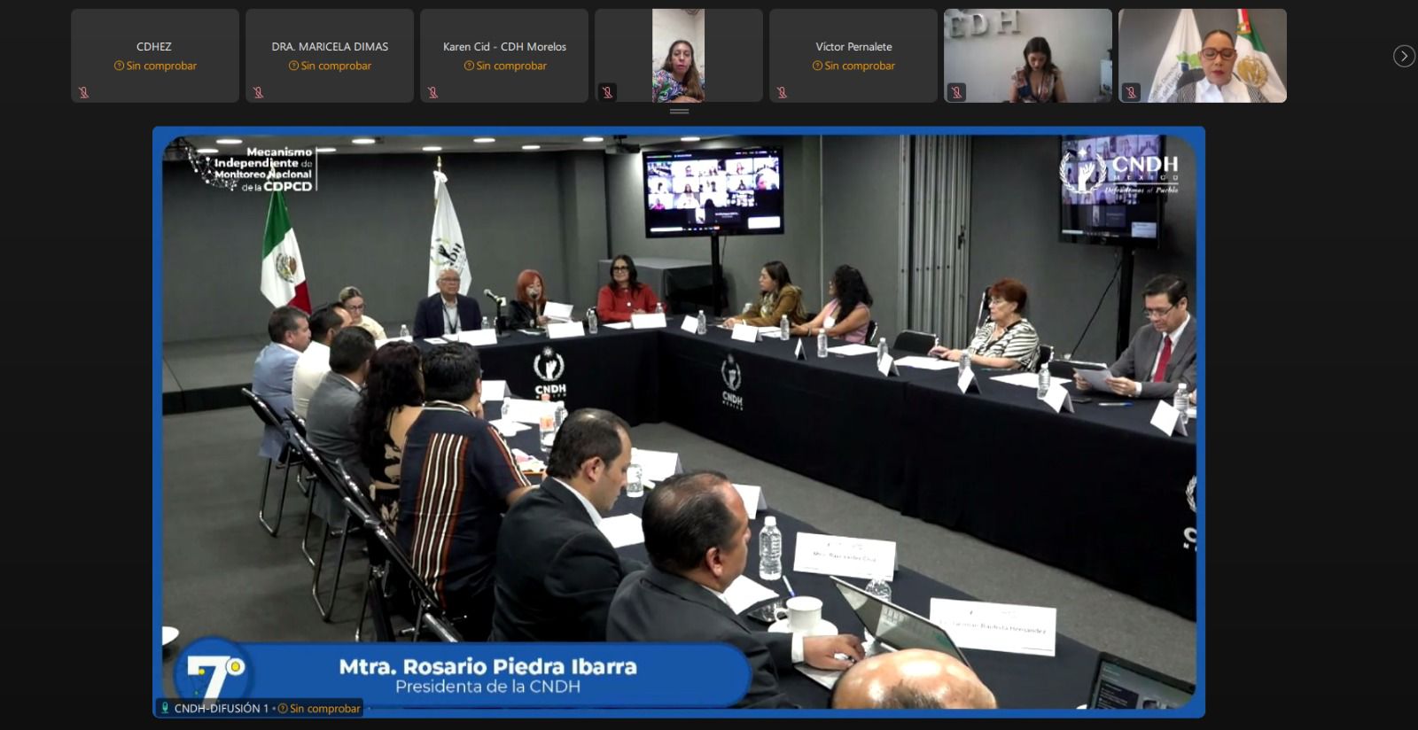 La Primera Visitadora General y personal de la Secretaría Técnica Ejecutiva de la Comisión de Derechos Humanos del Estado de Puebla (CDH Puebla), presidida por Isela Sánchez Soya, participaron de manera virtual en el Séptimo Encuentro Nacional de Mecanismos de Monitoreo de la Convención sobre los Derechos de las Personas con Discapacidad.