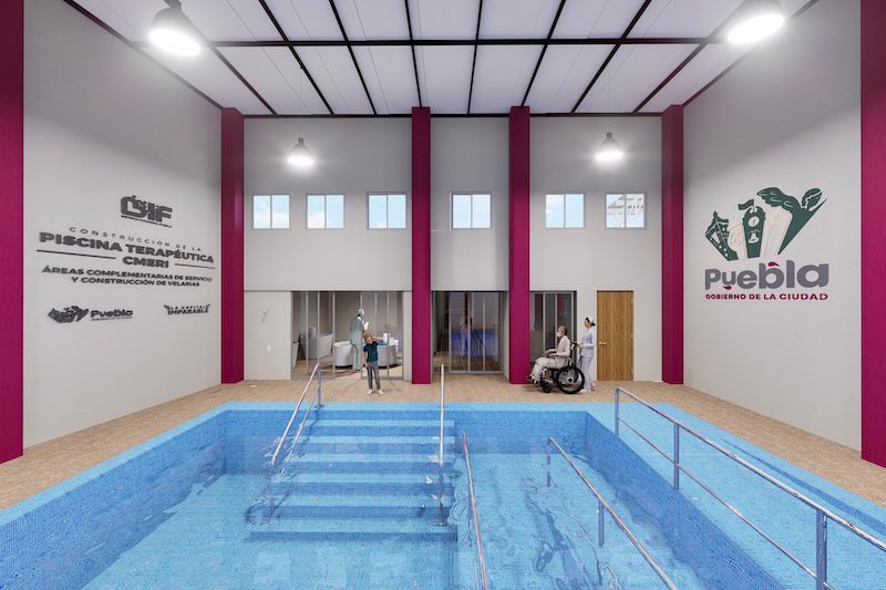 El secretario de Movilidad e Infraestructura, David Aysa, señaló que la obra contempla la construcción de áreas de recepción, tinas de hidroterapia, módulos de baño y vestidores, bodega, cuarto de máquinas, alberca híbrida, rampa de acceso, barandales y grúa de apoyo para pacientes.