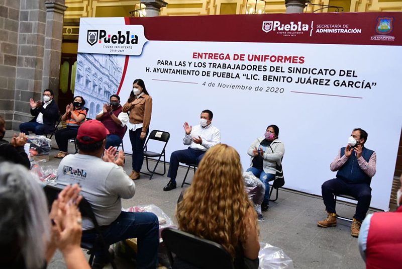 El Gobierno de la Ciudad, encabezado por Claudia Rivera Vivanco, entregó uniformes y artículos de protección para los Servidores Públicos del Ayuntamiento del Municipio de Puebla afiliados al Sindicato “Lic. Benito Juárez García» a fin de dar cumplimiento a las Condiciones Generales de Trabajo.