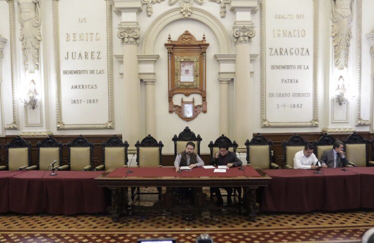 Edgar Damián Romero Suárez, Director Jurídico de la Secretaría del Ayuntamiento, en representación de la titular Liza Aceves, leyó un posicionamiento de la Presidenta Municipal Claudia Rivera Vivanco luego del pase de lista en la que se contabilizó a 9 regidores no existiendo quorum legal, por lo que la 33ª no pudo continuar derivado de la ausencia de las regidoras María Isabel Cortés Santiago, Cinthya Juárez Román, Libertad Aguirre Junco, Carmen María Palma Benítez, María Rosa Márquez Cabrera, Ana Laura Martínez Escobar, Marta Teresa Ornelas Guerrero, Patricia Montaño Flores, Silvia Guillermina Tanús Osorio, Luz Del Carmen Rosillo Martínez, Carolina Morales García Y Augusta Valentina Díaz De Rivera Hernández, así lo señaló el regidor Iván Camacho, quien ante la ausencia de la primera regidora presidió dicho acto protocolario.