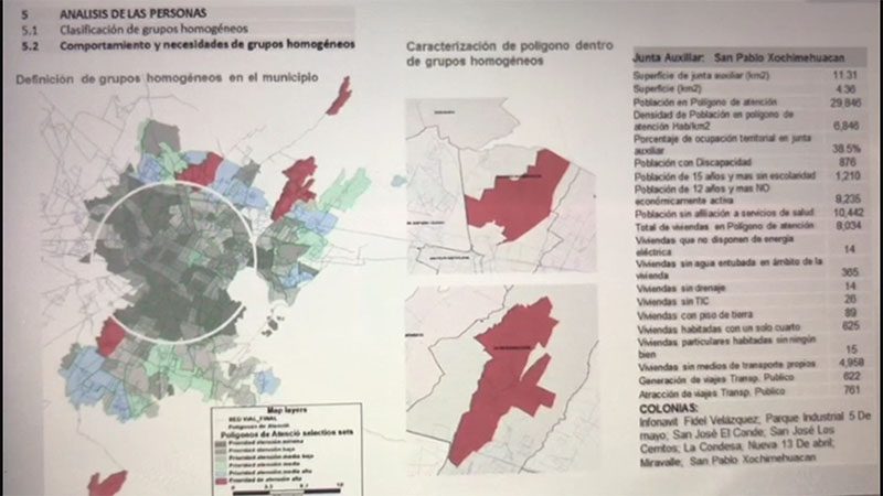 Es así como se efectuó el análisis por parte de especialistas con los datos que se le proporcionaron a la BUAP del comportamiento de grupos homogéneos en población, así como de sus necesidades, porcentajes de ocupación territorial, población con discapacidad, población mayores o menores de 15 años, entre otros datos relevantes.