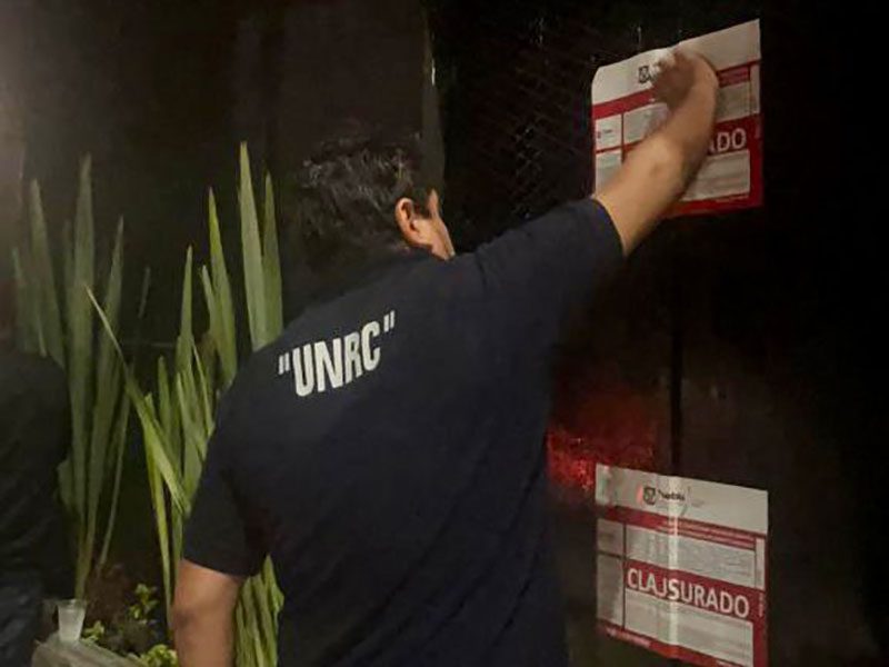 Las clausuras se llevaron a cabo en talleres mecánicos innominados en San Baltazar Campeche, Barranca Honda y la colonia Cristóbal Colón; en una academia de baile en Valle Dorado; en el centro botanero “El Tío” en Santa Cruz Los Ángeles; en dos restaurantes bar, uno sin nombre en Anzures y en “Santo Remedio”, en El Carmen; y en una cafetería y fuente de sodas en la Cristóbal Colón.