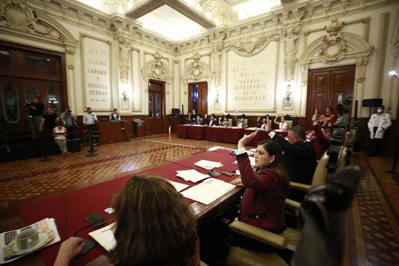 Durante esta trigésimo cuarta Sesión Extraordinaria de Cabildo, regidoras y regidores del Ayuntamiento de Puebla dictaminaron suspender las sesiones ordinarias y extraordinarias de la administración pública municipal, así como las mesas de trabajo de las diferentes comisiones que componen el ejercicio del Órgano Colegiado.