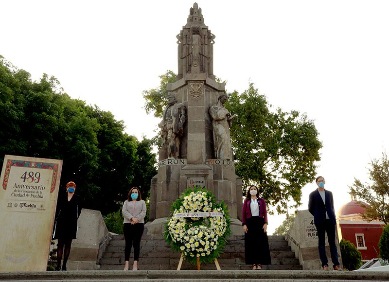 El Gobierno de la Ciudad, encabezado por Claudia Rivera Vivanco, conmemora los 489 años de la fundación de Puebla con una ceremonia cívica y ofrenda floral en el Monumento a los Fundadores.