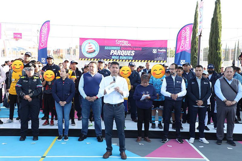 “Así, 61 parques como estos llevamos intervenidos en la ciudad, siempre procurando que vecinas y vecinos puedan disfrutar de estos espacios” aseguró Eduardo Rivera Pérez, Presidente Municipal, para luego comentar que algunos de los trabajos realizados para dejarla ‘de 10’ fueron el mantenimiento del pasto sintético, enrejado, gradas, baños, pisos, áreas verdes, mobiliario urbano, además de la iluminación del lugar.