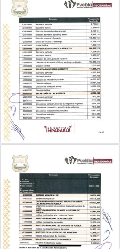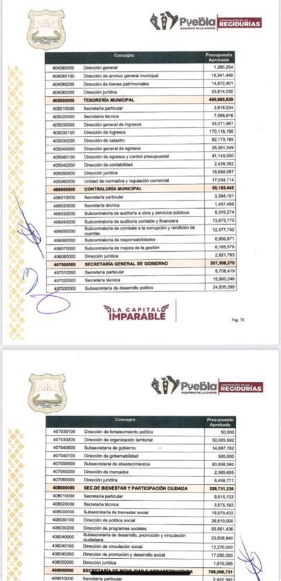 Primera Plana Puebla tuvo acceso al proyecto de presupuesto para el año que está por iniciar, en donde para la secretaría de seguridad pública, se programó un presupuesto de mil 617 millones de pesos, la partida presupuestal más importante, mientras que para la secretaría de Administración y tecnologías de la información, se asignaron recursos por mil 468 millones, el segundo más importante.
