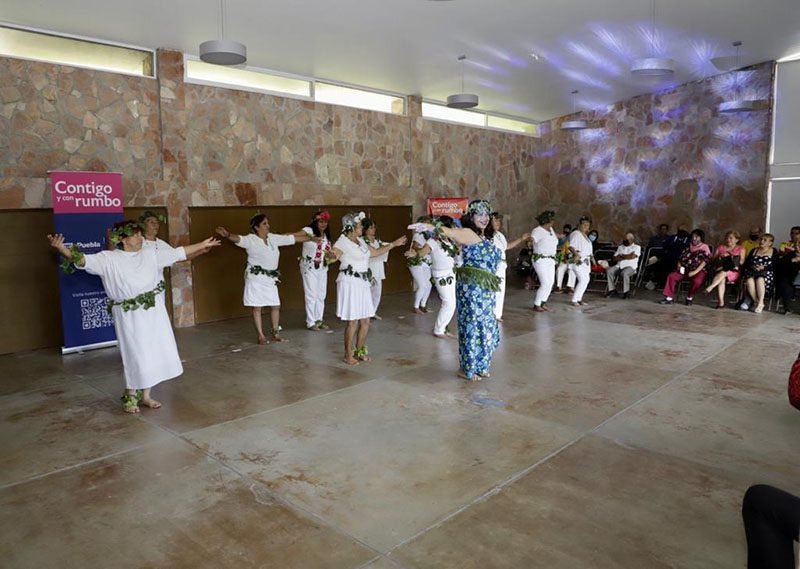 La Laguna de Chapulco fue testigo de la energía, entusiasmo e ilusión de las personas adultas mayores durante el Gran Baile para celebrar su día, el cual además de reunirlos para disfrutar de un momento de sano esparcimiento, tuvo el objetivo de dar muestra de las habilidades y vitalidad que las y los usuarios de los talleres han desarrollado a lo largo de su estancia en el Sistema Municipal DIF de Puebla (SMDIF), al presentar números de danzón, hawaiano, tango, cha cha cha y mambo.