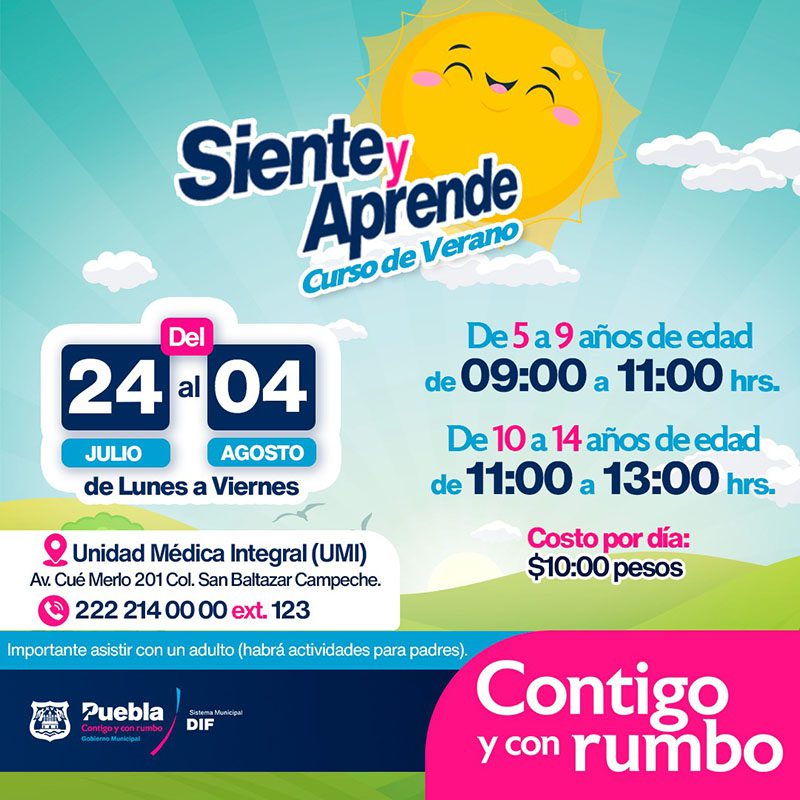 Para refrendar su compromiso con el acompañamiento emocional de las familias poblanas, el Sistema Municipal DIF pone a disposición de la ciudadanía el curso de verano: “Siente y Aprende” para niñas y niños de 5 a 14 años de edad, así como para sus madres, padres y tutores, esto con la finalidad de que realicen actividades que les permitan aprender herramientas para trabajar en su desarrollo y bienestar.