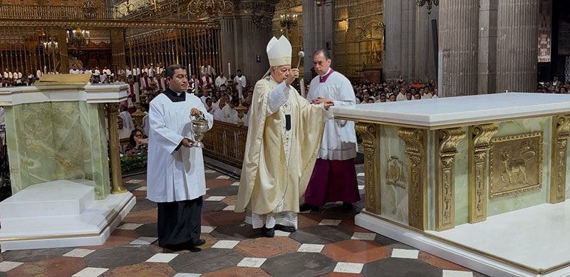 En una emotiva y solemne ceremonia, el arzobispo de Puebla, monseñor Víctor Sánchez Espinosa, presidió la celebración eucarística en la Catedral de Puebla, durante la cual se llevó a cabo la consagración del nuevo altar y la bendición del ambón y la cátedra, en un acto de gran significado espiritual para la Iglesia poblana.