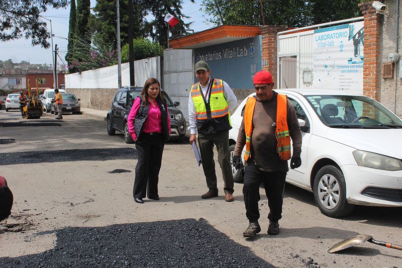 Durante su recorrido, la contralora, Dulce Lilia Rivera Aranda constató que las cuadrillas realicen sus labores conforme a los estándares de calidad establecidos, verificando el uso adecuado de materiales y el cumplimiento de los tiempos programados.