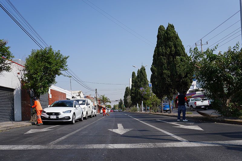 Se intervinieron un total de 22 mil 756 metros cuadrados, a través de labores de fresado, barrido, impregnación con liga, tendido de carpeta asfáltica, así como colocación de reductores de velocidad, entre otras acciones