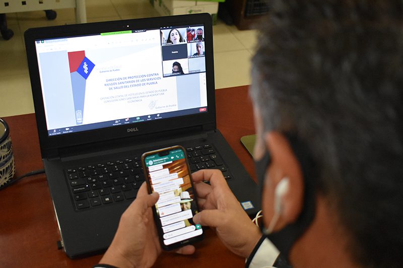 La Dirección de Atención de la dependencia, en coordinación con la Comisión Federal para la Protección contra Riesgos Sanitarios (Cofepris), realizó la plática “Operación de Hoteles en el Estado de Puebla, consideraciones sanitarias para la reapertura económica”, que permitió aclarar dudas respecto a la Nueva Normalidad centradas en la correcta aplicación de los protocolos ante la reapertura del sector.