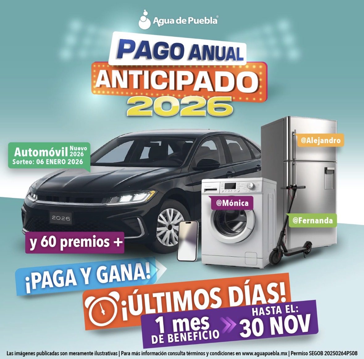 Agua de Puebla invita a todos los usuarios domésticos a aprovechar esta última semana del “Gran Fin del Ahorro” que concluye el próximo domingo 30 de noviembre y ofrece grandes beneficios con dos programas: 1) “Pago Anual Anticipado 2026”:
