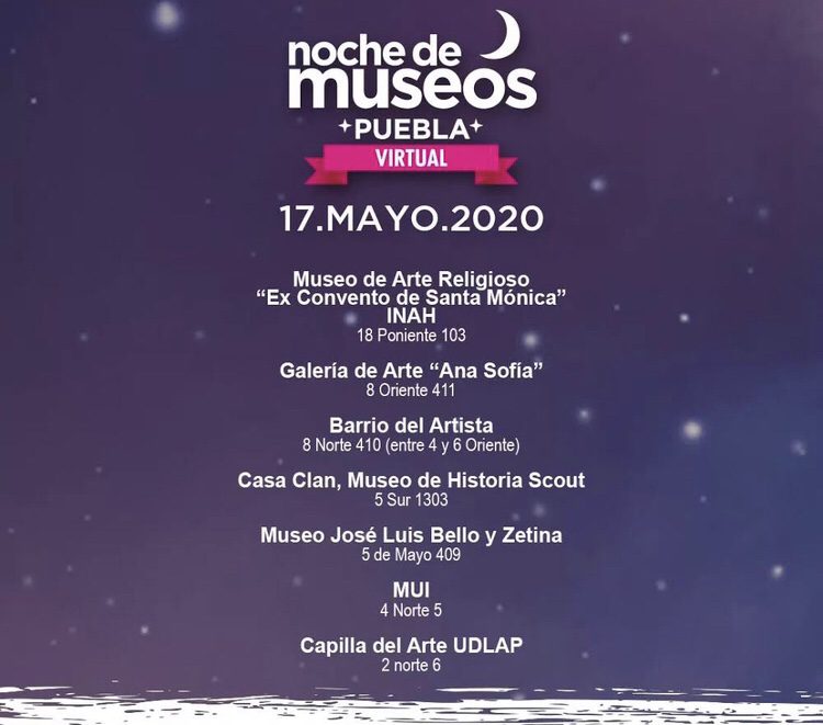 Estrenos a través de los perfiles de Facebook: “Noche de Museos Puebla” y “Puebla Ciudad Patrimonio”