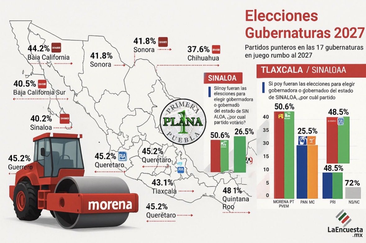 Este fin de semana la empresa “La Encuesta Mx” presentó los resultados de su más reciente estudio de opinión sobre las 16 entidades en donde habrá elecciones en el 2027, el dato es contundente. Si hoy hubiera elecciones en esos lugares Morena, el partido hegemónico junto con sus aliados, arrasaría electoralmente a la oposición, la cual solo mantendría el control sobre dos entidades en donde, por cierto, gobiernan: Aguascalientes y Querétaro.