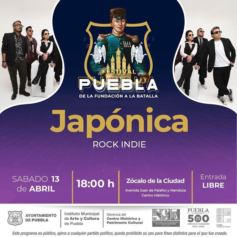 El sábado 13 de abril, en el Atrio de San Francisco se presenta el grupo ‘’Barriando’’ con la Fiesta Fundacional Puebla 2024, de 15:00 a 19:00 horas. En el Zócalo, se tendrán 3 espectáculos: