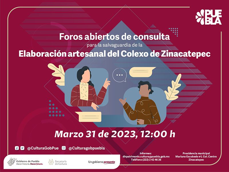 Con el objetivo de impulsar la participación ciudadana y reconocer las tradiciones gastronómicas de las regiones de Puebla, el gobierno estatal, a través de la Secretaría de Cultura, realizará el primer foro de consulta para la salvaguarda de la “Elaboración artesanal del colexo de Zinacatepec”, a fin de que sea declarado como Patrimonio Cultural del Estado.