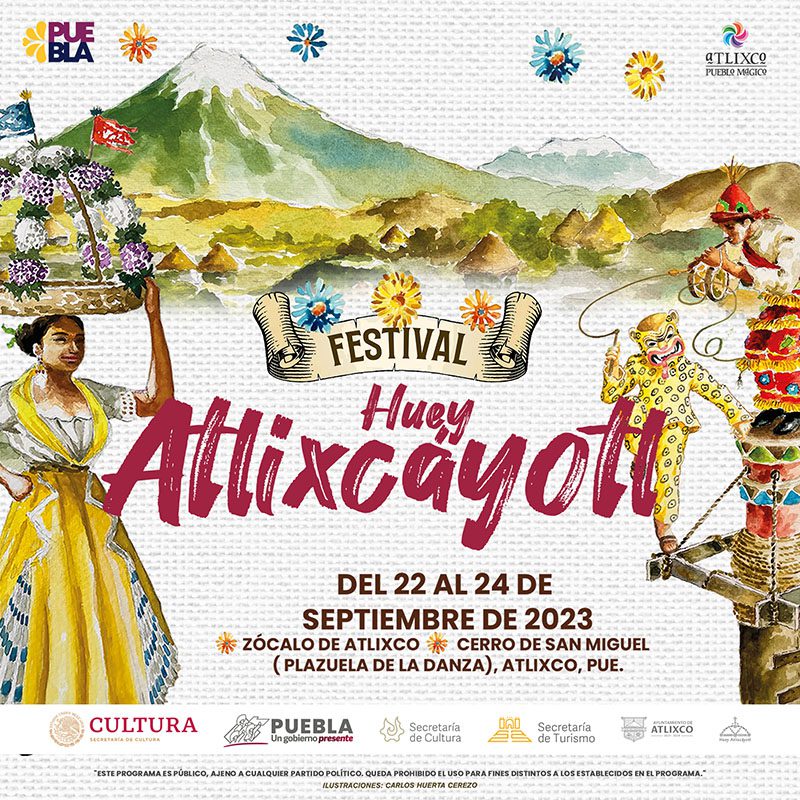 El gobierno presente de Sergio Salomón, en conjunto con el Ayuntamiento de Atlixco y el Patronato del Festival “Huey Atlixcáyotl”, invita a la 58 edición de dicha festividad, a realizarse del 22 al 24 de septiembre en el zócalo y cerro de San Miguel (Plazuela de la Danza) del municipio de Atlixco.