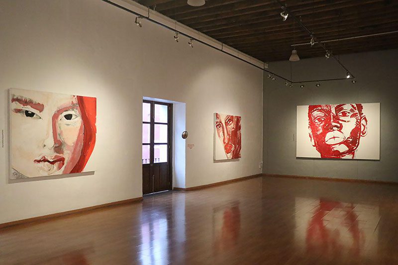 La obra de Amalia Burgo, expuesta en la sala Juan Tinoco, muestra cinco cuadros en los que recrea rostros en tonos magenta o rojizos, los cuales buscan darles significado a los detalles de la cara y dejar a un lado el resto del cuerpo. La ilustradora llena el espacio de la exposición con presencias dominantes y gigantescas de diversos gestos.