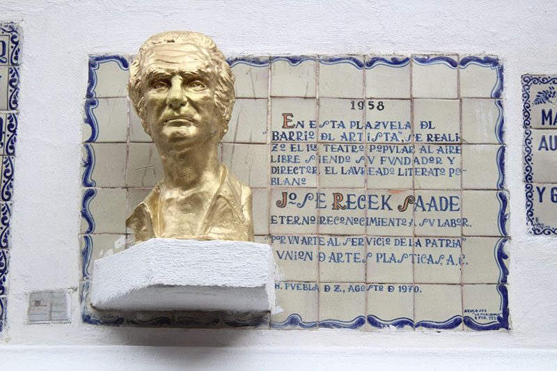 La Secretaría de Cultura llevó a cabo la develación del nuevo busto del ensayista, poeta y dramaturgo, José Recek Saade en el Barrio del Artista, diseñado y producido por el escultor Alberto Vizcarra para conmemorar el 50 aniversario luctuoso del humanista poblano.