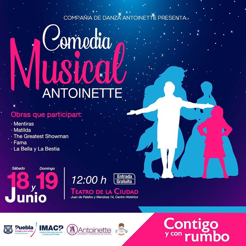 Destaca que el Teatro de la Ciudad contará este mismo día con el performance de la Compañía Antoinette de Comedia Musical, revisitando clásicos como “Fama”, “Mentiras”, “Bella y la Bestia”, a las 12:00 horas, y a las 17:00 horas, este mismo grupo cerrará el telón con una Gala de Danza que incluirá el clásico “El lago de los cisnes”