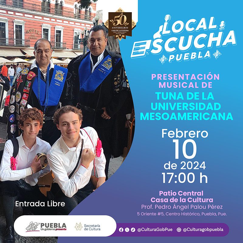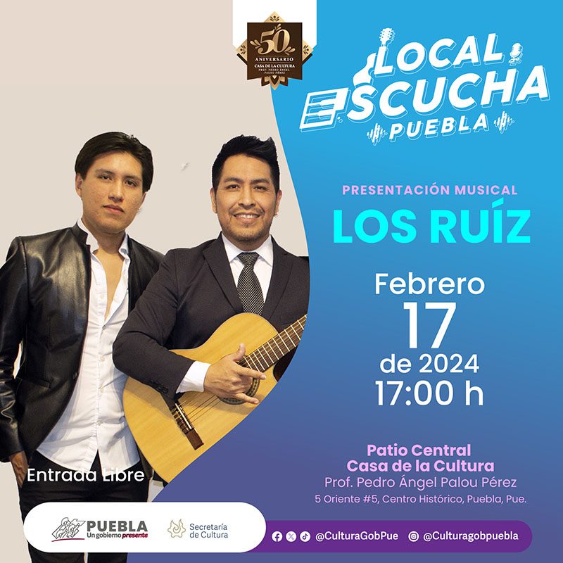 El programa “Local, Escucha Puebla” promueve artistas emergentes y con amplia trayectoria de distintos géneros musicales. Los próximos eventos programados serán publicados a través de las redes sociales de la dependencia: “Secretaría de Cultura Puebla” (Facebook) y @Culturagobpue (X).