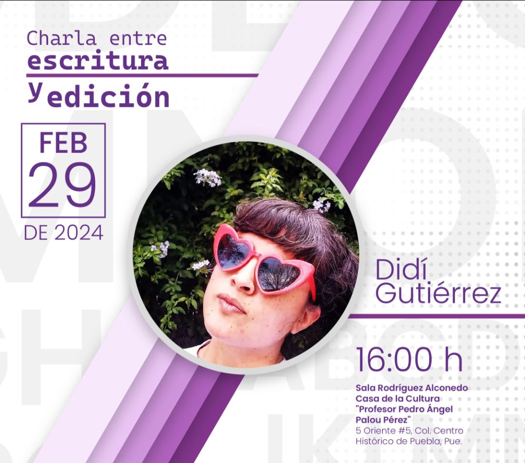 Entre las actividades iniciales, este jueves 29 de febrero, a las 12:00 horas, será realizada la presentación oficial de la iniciativa; mientras que a las 16:00 horas tendrá lugar la charla “Entre Escritura y Edición”, impartida por la escritora mexicana, Didí Gutiérrez, ganadora deI Premio de Crónica Breve Carlos Monsiváis en el 2019. Ambos eventos serán en la Casa de la Cultura “Profesor Pedro Ángel Palou Pérez” (5 Oriente número 5, Centro Histórico).