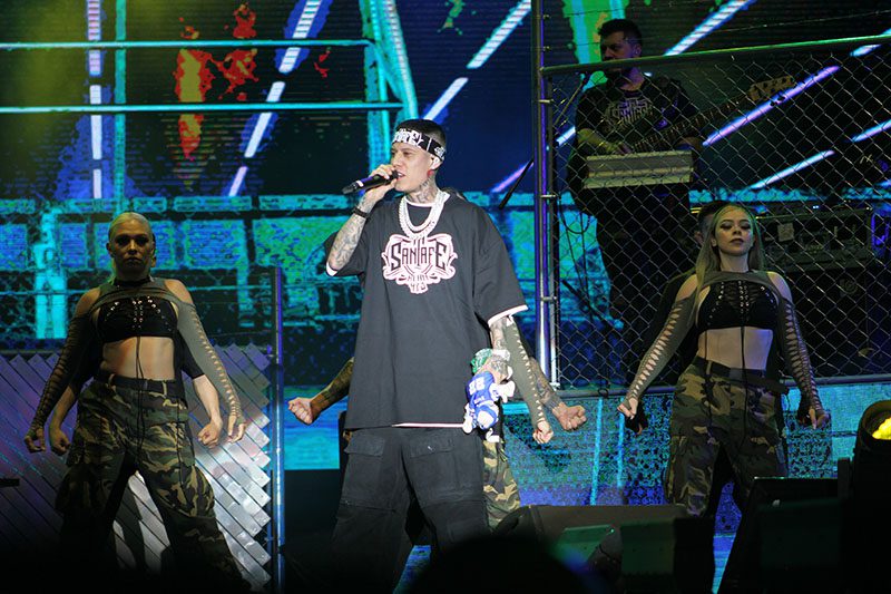 Desde su aparición en el escenario con el tema «Cuidando el territorio», Santa Fe Klan agradeció el cariño de las y los poblanos, no perdió oportunidad de interactuar con ellos y mostró sus dotes con el acordeón en compañía de bailarines.