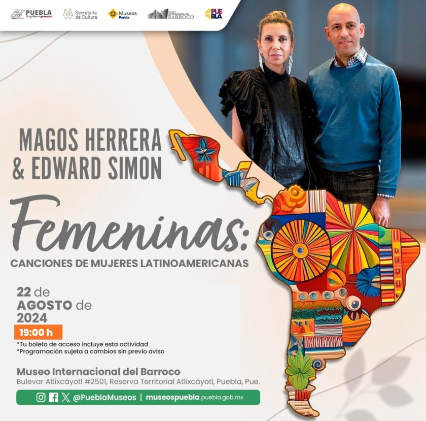 Anel Nochebuena invitó a los conciertos “A la luz de las velas” el 15 de agosto a las 19:00 horas en la Biblioteca Palafoxiana y “Femeninas: canciones de mujeres latinoamericanas” con la compositora de jazz Magos Herrera y el maestro de piano Edward Simon, el 22 de agosto, a las 19:00 horas en el MIB.