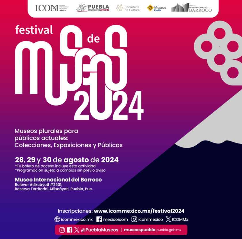 En rueda de prensa del mandatario estatal, la directora de Museos Puebla, Anel Nochebuena también informó que el MIB albergará del 28 al 30 el Festival de Museos 2024, a realizarse en conjunto con el Comité Mexicano del Consejo Internacional de Museos (ICOM México). Este es el encuentro más grande del país dirigido a profesionales de museos, cuyos ejes temáticos girarán en torno a las exposiciones, las colecciones y los públicos.
