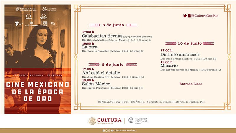 Las y los interesados en recordar la Época de Oro del cine mexicano podrán conocer el programa completo en las redes sociales de la dependencia: Facebook (Secretaría de Cultura Puebla) y Twitter (@CulturaGobPue).
