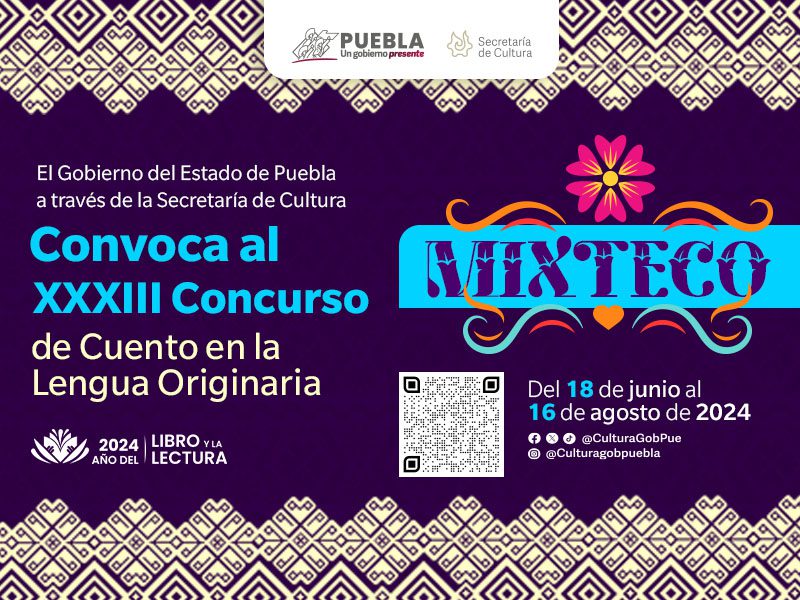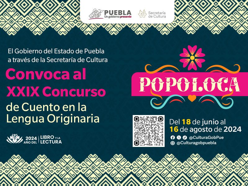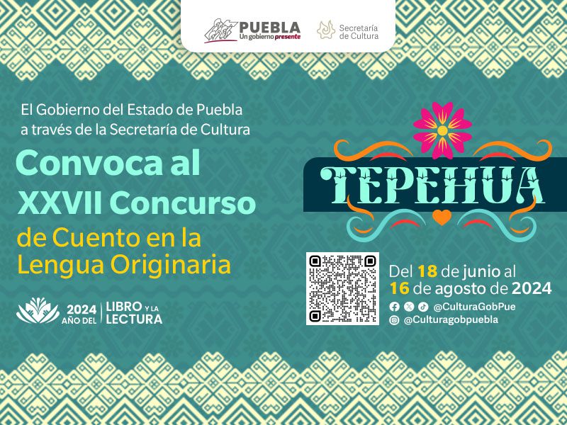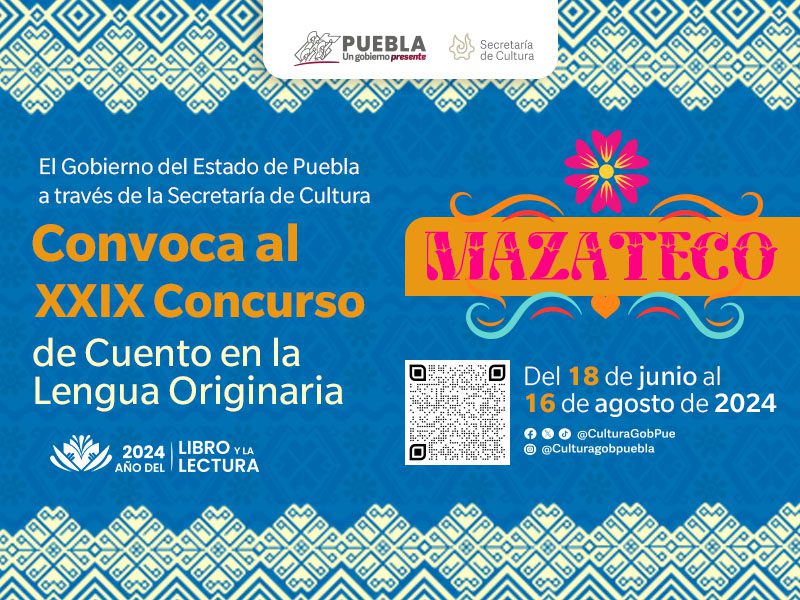 En tanto, para habitantes de la entidad poblana con un mínimo de 18 años, la dependencia emitió siete concursos de cuentos escritos de forma bilingüe, en español y en las siguientes lenguas originarias: mazateco, mixteco, náhuatl, otomí, popoloca, tepehua y totonaco; cuyo periodo de registro finalizará el 16 de agosto.