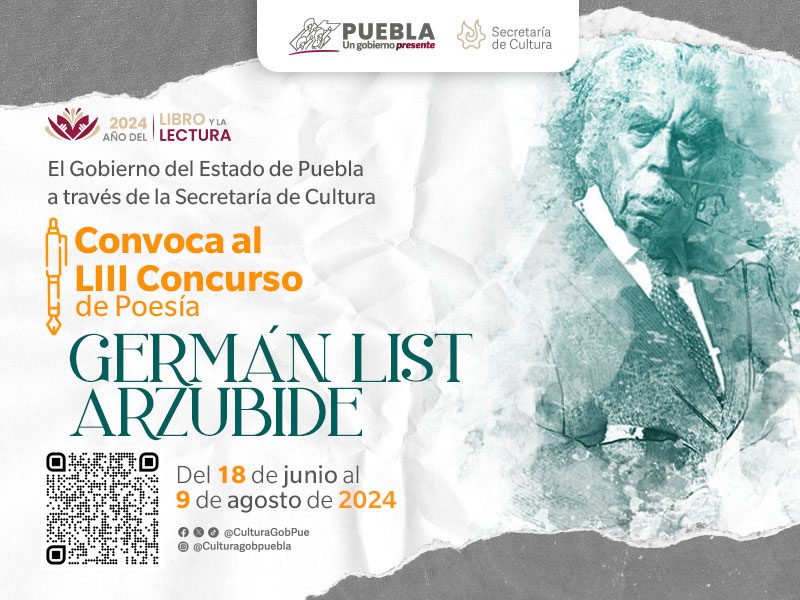 Hasta el 16 de agosto, personas de entre 15 y 19 años podrán participar en el “IX Concurso Nacional de Poesía Joven para Estudiantes de Bachillerato Escolarizado”; mientras que, antes del 09 de agosto, escritoras y escritores con mayoría de edad podrán inscribirse al “LIII Concurso de Poesía Germán List Arzubide”.