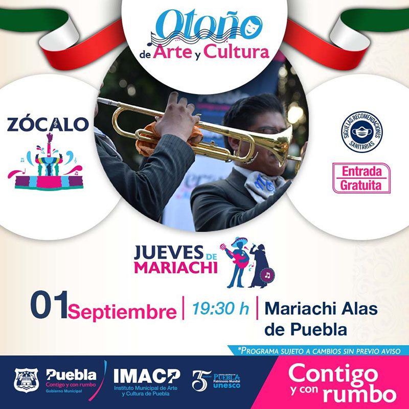 Las actividades se desarrollarán cada semana de jueves a domingo –con excepción de algunos eventos especiales—, y están encaminadas a reforzar los valores patrióticos y el orgullo de ser mexicanos, por lo que este 01 de septiembre se estrena la programación con el Mariachi Alas de Puebla, a las 19:30 horas en el Zócalo.