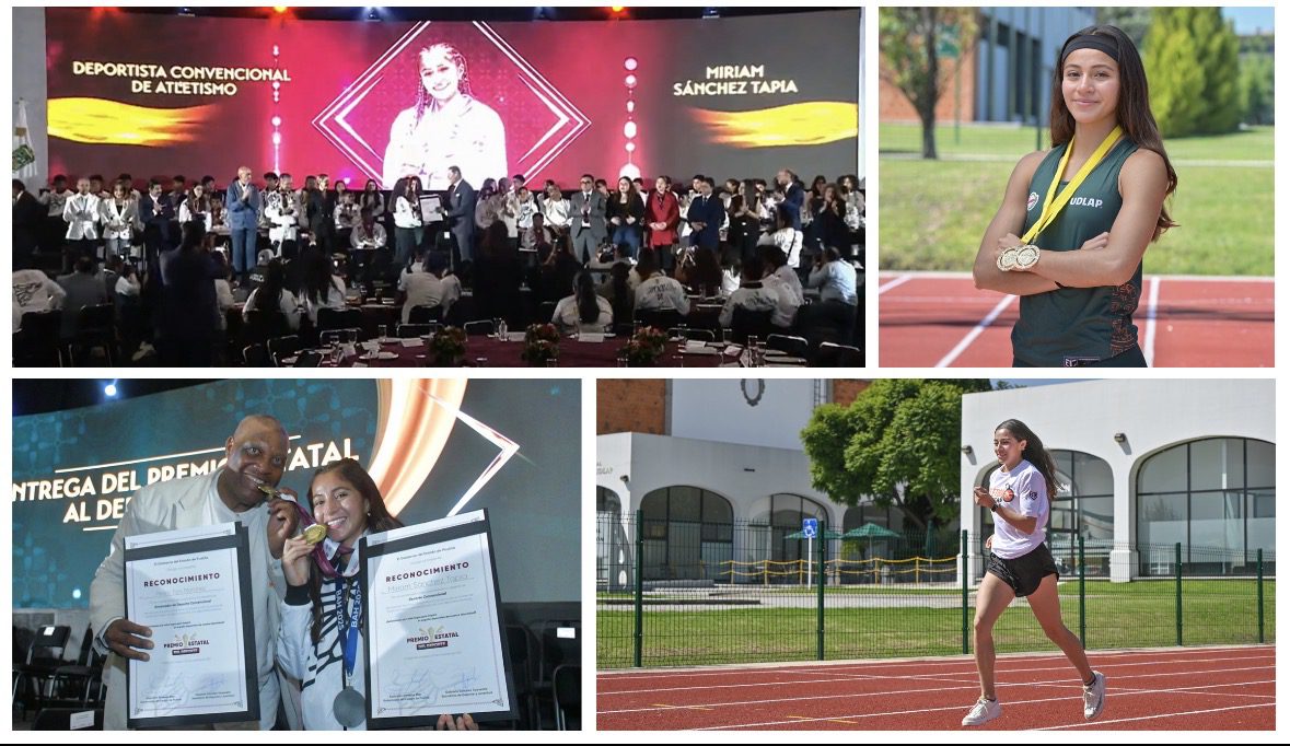 Cholula, Puebla; a 20 de noviembre de 2025.- La excelencia deportiva y académica de la Universidad de las Américas Puebla (UDLAP) fue reconocida a nivel estatal, luego de que Miriam Sánchez Tapia y Pedro Tani Martínez, velocista y entrenador de los Aztecas de Atletismo respectivamente, fueran reconocidos de manos del Gobernador de Puebla con el Premio Estatal al Deporte 2025.