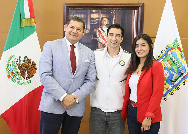 El gobernador del Estado de Puebla, Alejandro Armenta, acompañado por la secretaria de Deporte y Juventud, Gaby “La Bonita” Sánchez, sostuvieron un emotivo encuentro con el exponente de la gimnasia artística, Diego Neumaier Ortiz, joven poblano de 27 años cuya historia de vida es testimonio de superación, perseverancia y pasión por el deporte.