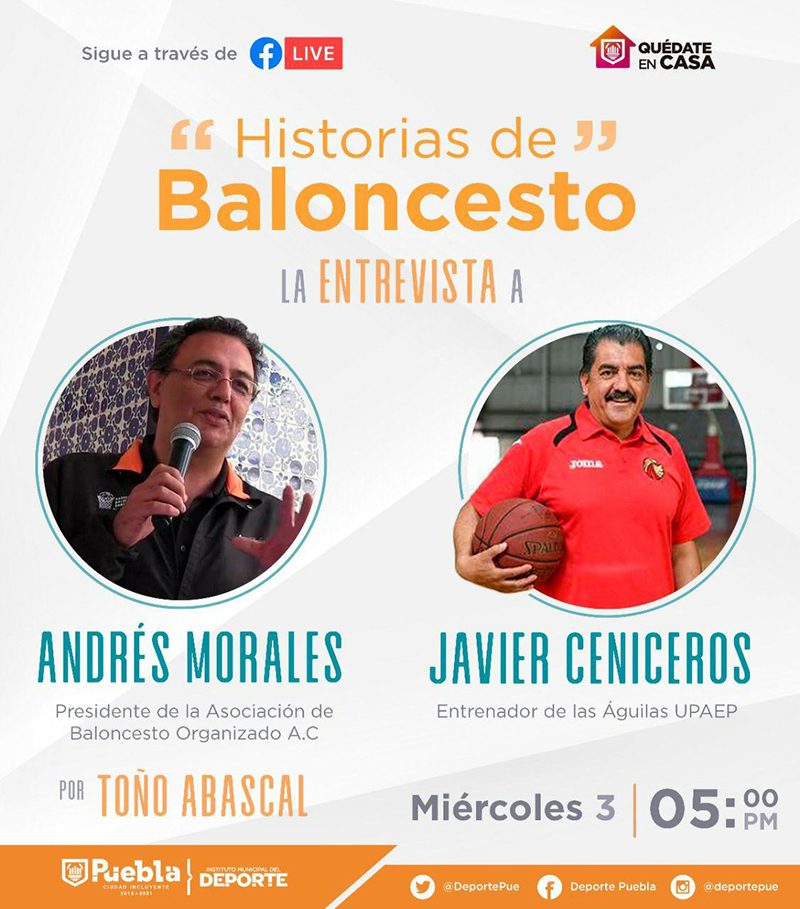 El Gobierno de la Ciudad, a través del Instituto Municipal del Deporte (IMDP), sigue promoviendo e impulsando la actividad deportiva desde las redes sociales. El miércoles 3 de junio, a las cinco de la tarde a través del Facebook Deporte Puebla, se realizará una entrevista con Javier Ceniceros y Andrés Morales, dos de los personajes más representativos del baloncesto poblano.