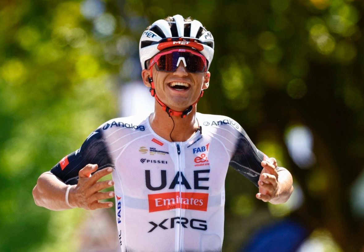 perseguidores, entre ellos su compañero Juan Ayuso y el español Alex Aranburu.