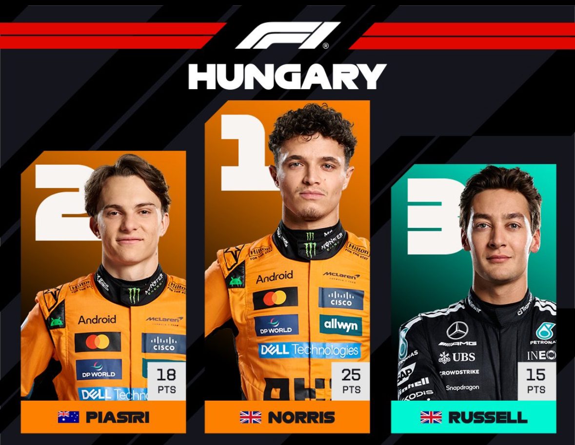 Tras una intensa batalla con su compañero Oscar Piastri, a quien superó por apenas 0.6 segundos en la meta. Con una estrategia de una sola parada, Norris logró su quinta victoria del año y la número 200 en la historia de McLaren en Fórmula 1.