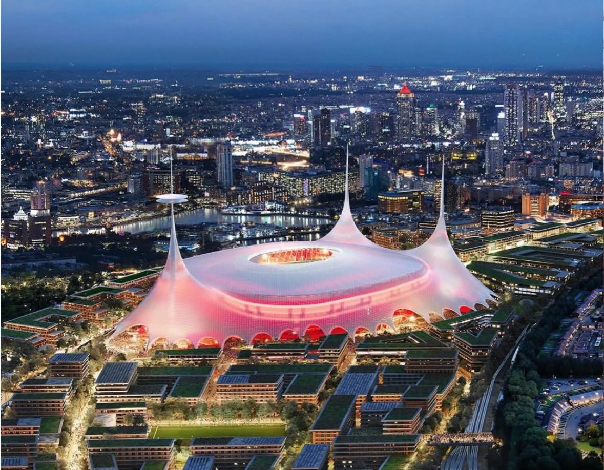 Será construido a lado de Old Trafford. Tendrá capacidad para 100 mil espectadores, aportará 7 mil 300 millones de libras adicionales al año a la economía del Reino Unido.