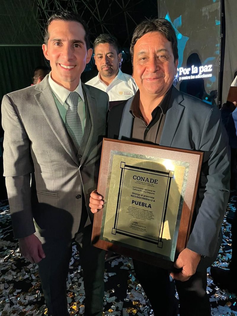 En representación del Gobierno del Estado de Puebla, el subsecretario de Deporte de la Secretaría de Deporte y Juventud, Mauricio García Castillo, acudió a recibir el reconocimiento luego de un año 2025 donde la entidad fue anfitrión de eventos de talla nacional e internacional.