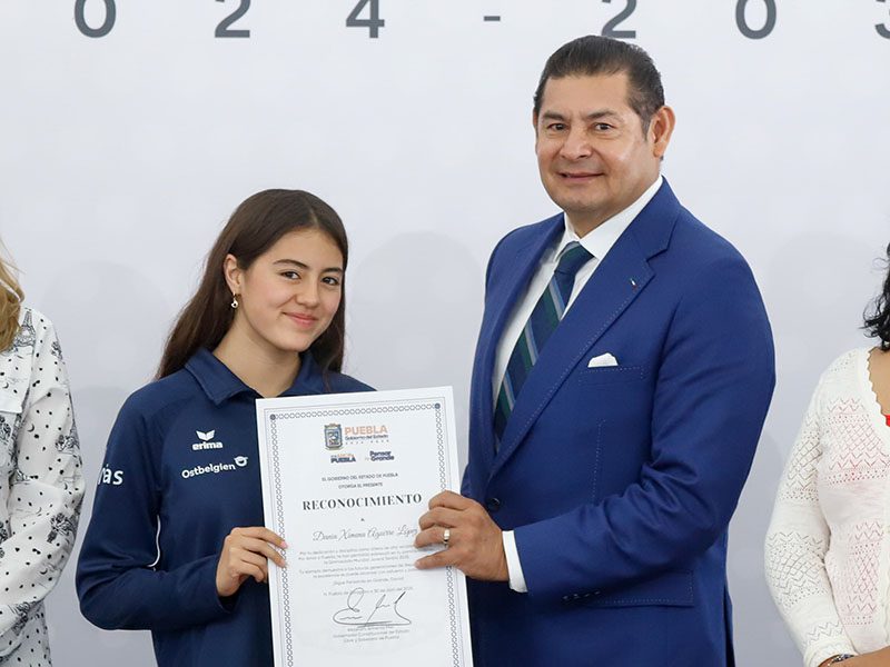 Con el objetivo del Gobierno del Estado de consolidar a Puebla como una “Tierra de campeonas y campeones”, el gobernador Alejandro Armenta entregó un reconocimiento a la nadadora Dania Ximena Aguirre López, por su sobresaliente participación en la Gymnasiada Mundial Juvenil 2025, celebrada en Zlatibor, Serbia.