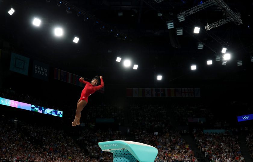 El público que llenó la Arena de Bercy estalló en una ovación cuando se anunció a Biles. Ataviada en un leotardo rojo, la estadounidense brindó una nueva actuación para el recuerdo en lo que podría ser la última competencia de salto de su carrera.