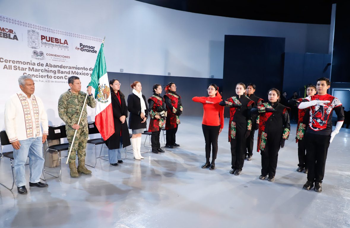 En un ambiente lleno de ánimo y emotividad que se vivió en el Auditorio de la Reforma, el secretario de Seguridad Pública, vicealmirante Francisco Sánchez González, abanderó a las y los jóvenes que integran la “All Star Marching Band”, que el próximo 1 de enero de 2025, representará a Puebla en el tradicional Desfile de las Rosas en Pasadena, California, en el vecino país de Estados Unidos.