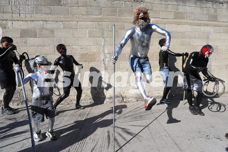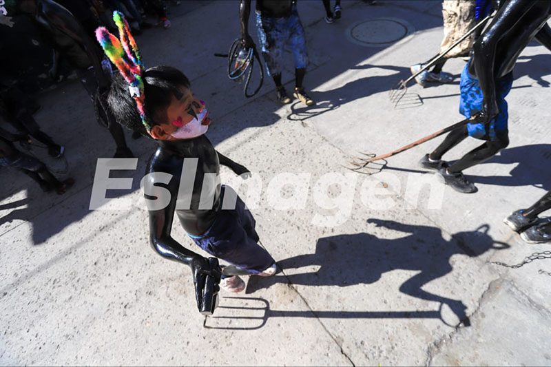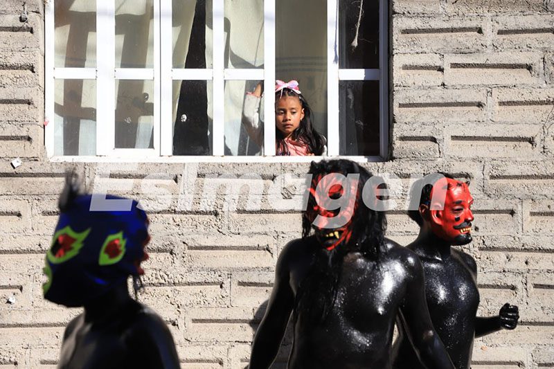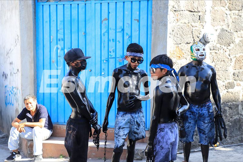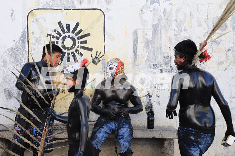 Año con año, los Xinacates cubren sus cuerpos con aceite y pigmentos para gritar, bailar y pintar las calles de San Nicolás de los Ranchos, durante el carnaval que se festeja previo a la Semana Santa.