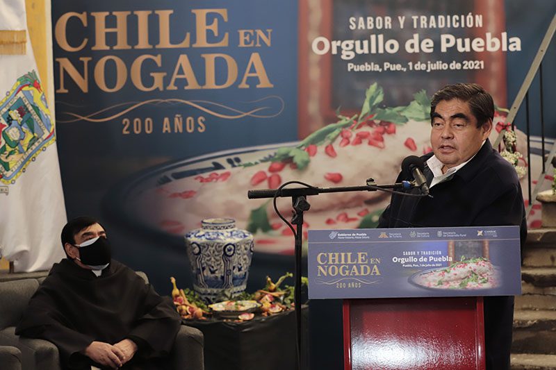 Al presidir la Presentación de las Actividades Conmemorativas por el “200 Aniversario del Chile en Nogada” en el Templo de San Agustín, el gobernador Miguel Barbosa Huerta destacó que este platillo resalta el talento y la riqueza de la cocina poblana, además de que permite que Puebla sea vista desde otros lugares como una entidad atractiva y con diversidad cultural.