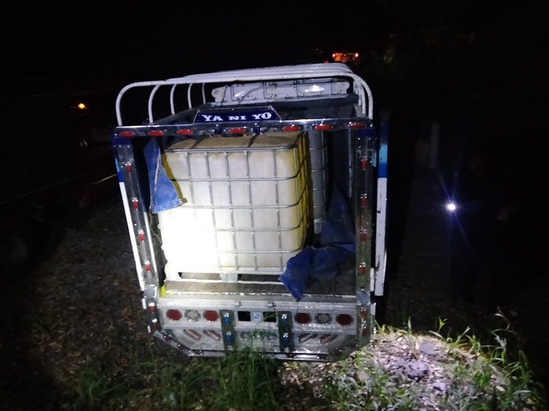 Ambos masculinos, las camionetas y los recipientes quedaron a disposición de las autoridades ministeriales.