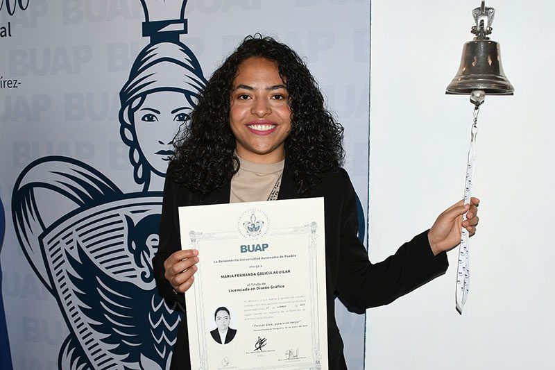 María Fernanda Galicia Aguilar se ha negado a seguir un camino predeterminado. A sus tres años fue diagnosticada con sordera severa profunda y su comunicación parecía destinada a ser mediante el lenguaje de señas; pero no fue así. Aprendió a leer los labios. Antes de responder cómo se siente al recibir de la BUAP su título como licenciada en Diseño Gráfico, esboza una enorme sonrisa y expresa con palabras lo agradecida que está con sus profesores, compañeros y con la universidad que la formó.