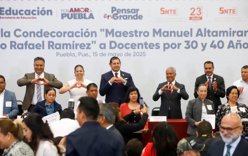 Con la reconstrucción del CAPCEE se apoyará más a las escuelas, con la auditoría del ISSSTEP se atenderá con dignidad a los maestros y con el Programa de Obra Comunitaria se apoyará con paneles solares a las instituciones educativas, afirmó el gobernador Alejandro Armenta, al entregar la Condecoración «Maestro Manuel Altamirano por 30 años de servicio y el premio «Maestro Rafael Ramírez», por 40 años de trabajo a profesores del estado.