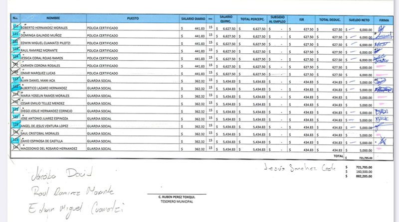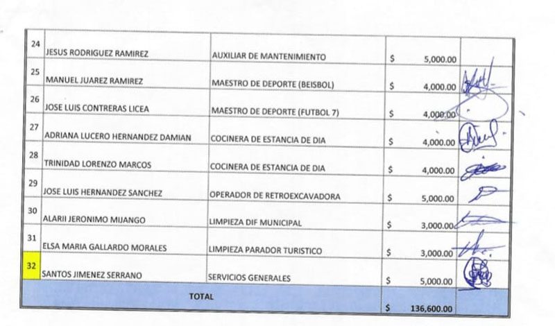 Sánchez Méndez tiene en la nómina que siguen apareciendo sus familiares y algunos otros les paga a través de apoyos tal es el caso de Diana López Sánchez, Melisa López Sánchez y Teresa Gómez Sánchez quienes se encuentran en el DIF Municipal, José Luis Sánchez , Karen Méndez Vicente y Diana Vicente Giménez de igual forma Idam Álvarez Castellanos primo del mismo presidente y la presidenta del DIF, José Arturo Castellanos Alameda tío de la Presidenta Afra Matilde Castellanos Valenzuela e Iván Alejandro Valenzuela Castellanos hermano de la misma, entre algunos otros familiares que tiene en puestos estratégicos para cuidar el negocio familiar.